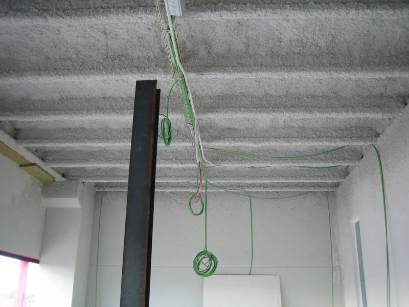 Mortero proyectable compuesto de lanas minerales y aglomerantes hidráulicos inorgánicos. Su elevada densidad y baja conductividad térmica permiten una excelente protección estructural frente al fuego.