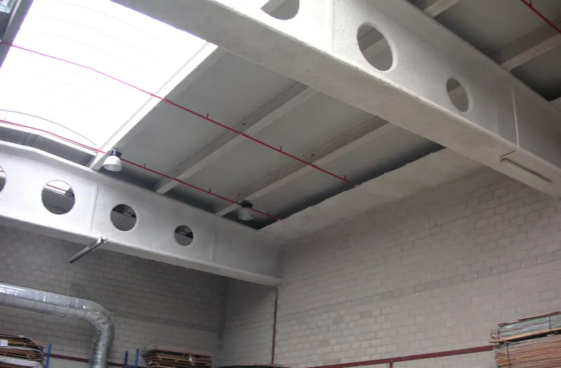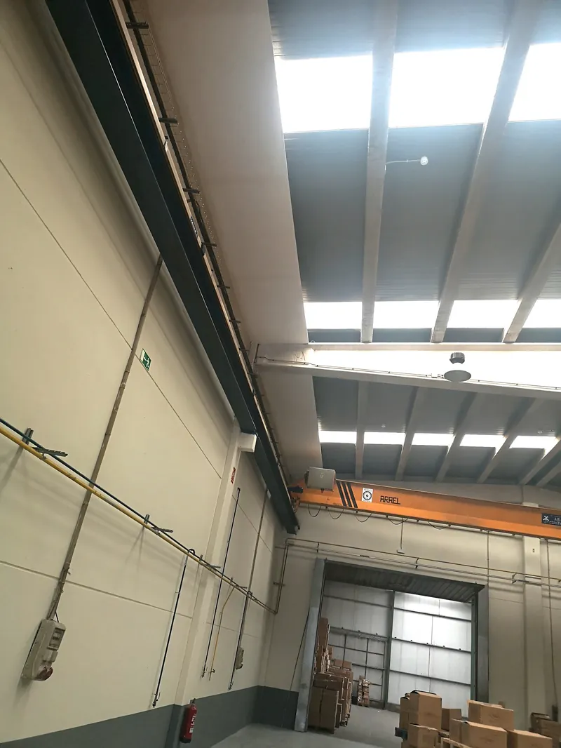 Las franjas o barreras cortafuegos crean una separación resistente al fuego entre naves contiguas o bajo cubiertas, reduciendo el riesgo de propagación entre sectores adyacentes.